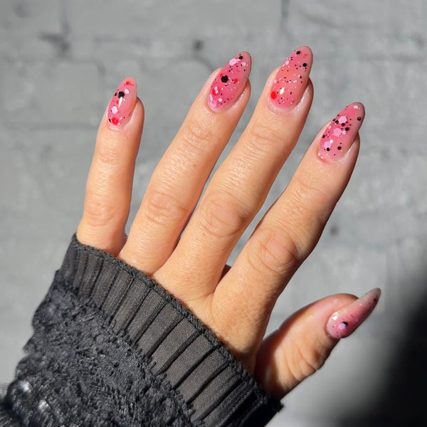 JELLY BLOODBATH HALLOWEEN GLITTER NEW CREAMIER FORMULA Hema Free Builder Gel. Our GRO Xpress has built-in base coat and soaks off beautifully! Click Here for Application advice NOT TESTED ON ANIMALS PROFESSIONAL USE ONLY Please note all effort is made to maintain accurate colour representation but this may be effected by the settings of your electronic device resulting in a slight differential to the actual product
